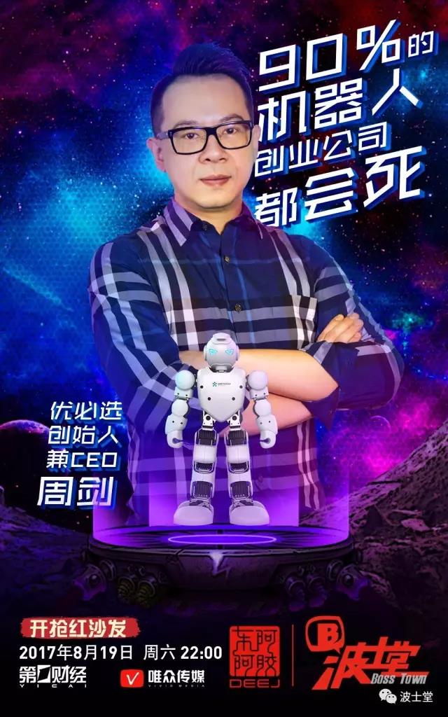 8月19日(周六)22:00,觀看第一財(cái)經(jīng)《波士堂》,看“周三瘋”——機(jī)器人爸爸周劍的“創(chuàng)業(yè)史”。