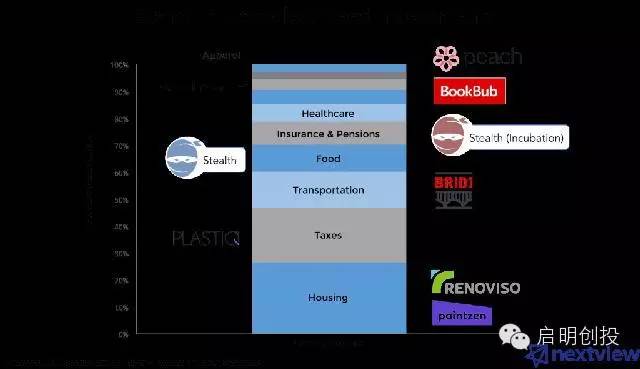 在NextView,我的合伙人和我慎重地遵循著一幅投資中的消費者地圖?!熬o跟資金的流向”是我們的投資策略,該策略占了我們所有投資組合的50%之多。開始的時候,我們將美國消費者支出看作是虛假財富地圖,然后找出創(chuàng)企能夠卷起市場風(fēng)云的機會。我們的結(jié)論很簡單,但也很重要,那就是:當(dāng)某創(chuàng)企把發(fā)展方向放在消費者支出比重最大的領(lǐng)域時,它的市場影響力一定會擴大。