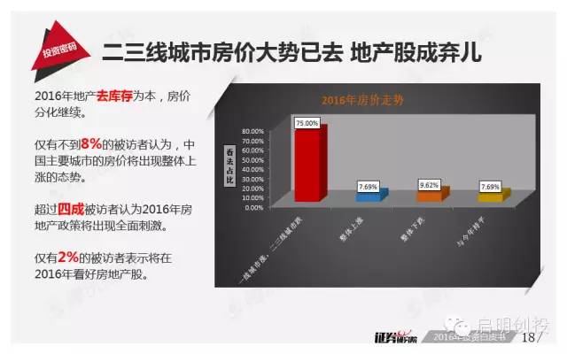 但房地產(chǎn)股或成為2016年的“黑洞”,報(bào)告指出,僅有2%的被訪機(jī)構(gòu)表示2016年看好房地產(chǎn)股。