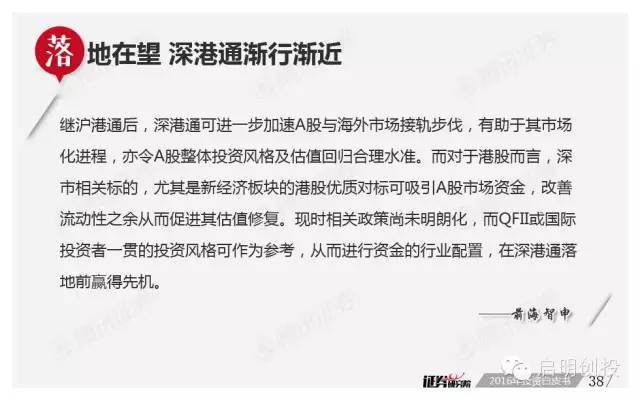 資本市場(chǎng)的國(guó)際化進(jìn)程也備受關(guān)注,A股納入MSCI指數(shù)、深港通等事件會(huì)否引來(lái)活水,社保養(yǎng)老金入市能否帶來(lái)援軍,也值得期待。