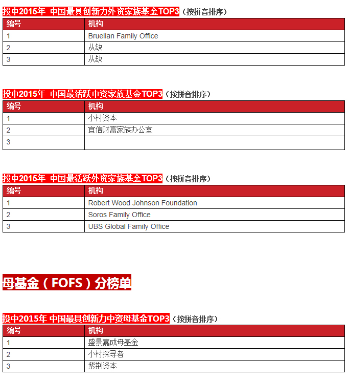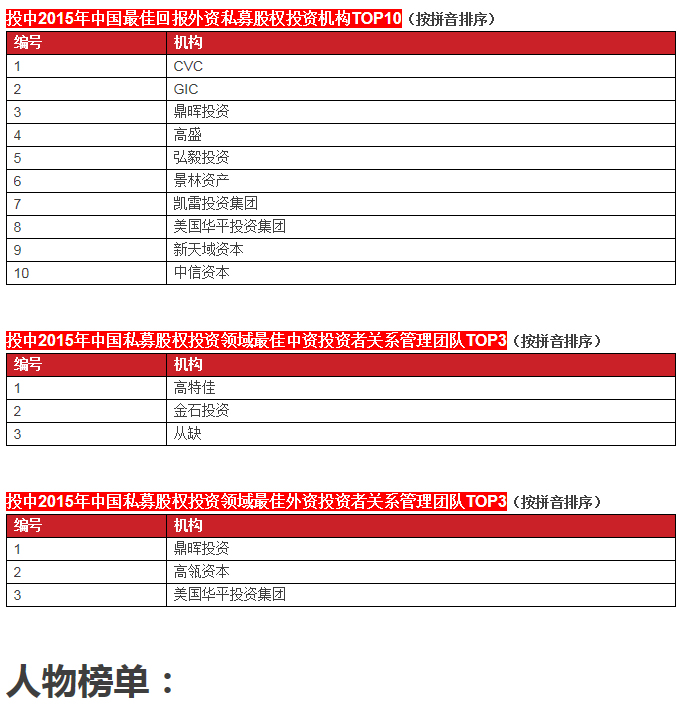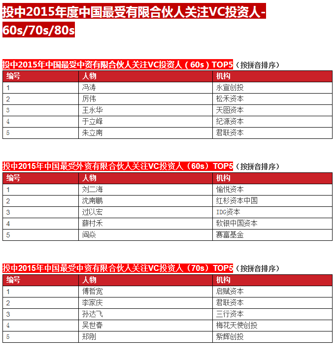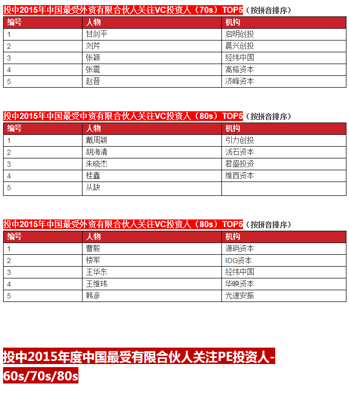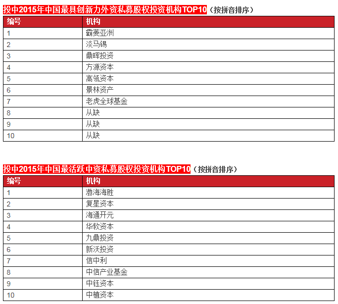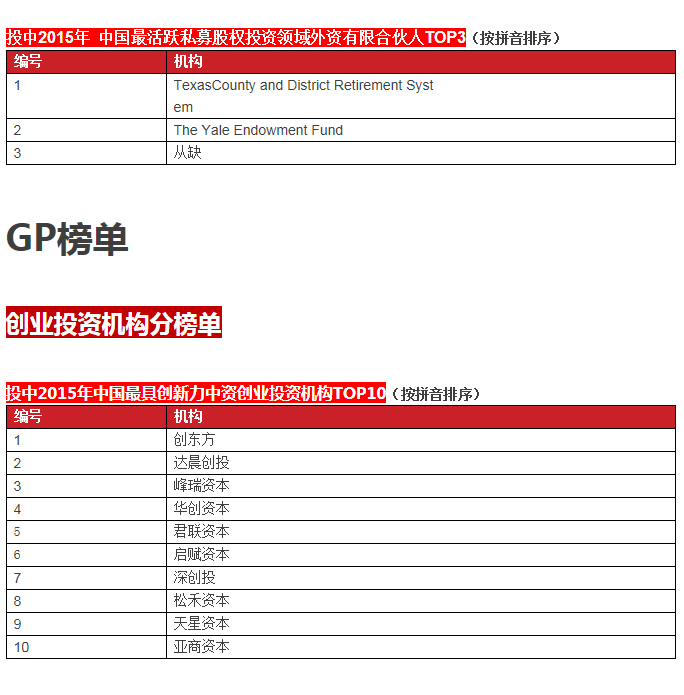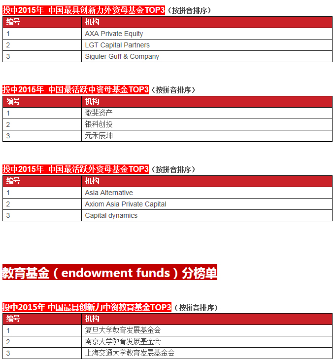 啟明創(chuàng)投榮膺投中2015年中國最具創(chuàng)新力創(chuàng)業(yè)投資暨私募股權(quán)投資機構(gòu)TOP10, 中國最具創(chuàng)新力外資創(chuàng)業(yè)投資機構(gòu)TOP10, 中國最活躍外資創(chuàng)業(yè)投資機構(gòu)TOP10和中國最佳回報外資創(chuàng)業(yè)投資機構(gòu)TOP10.啟明主管合伙人甘劍平先生榮膺投中2015年中國最受外資有限合伙人關(guān)注VC投資人(70s)TOP5。