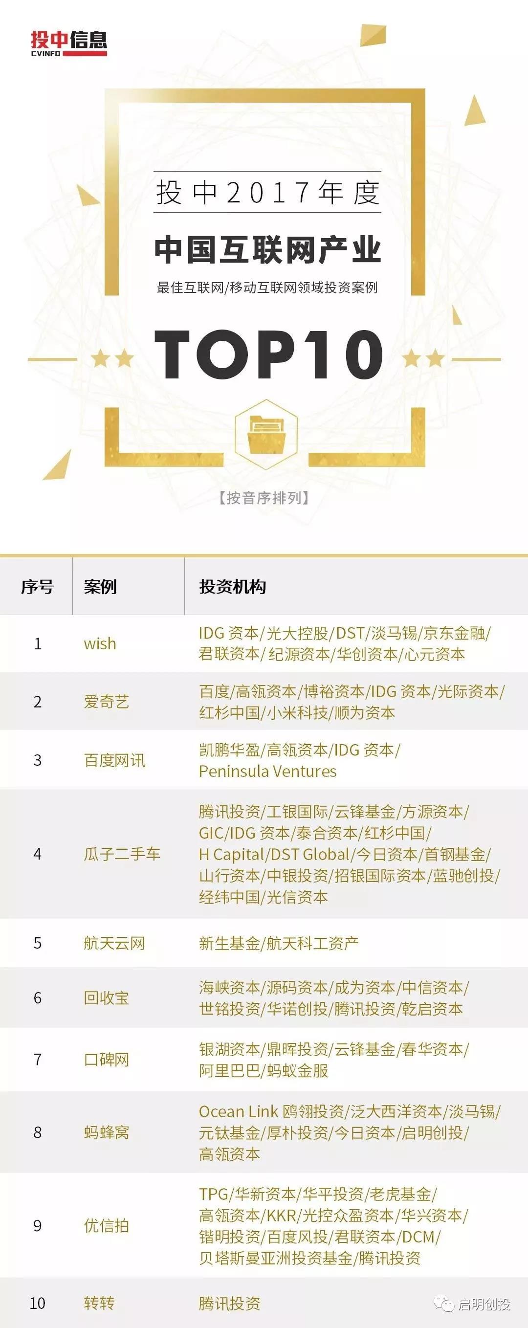 4月24日,投中信息正式發(fā)布“投中 2017年度榜”榜單。啟明創(chuàng)投在個(gè)細(xì)分產(chǎn)業(yè)榜單的獎(jiǎng)項(xiàng)中同樣表現(xiàn)搶眼,共有14家被投企業(yè)入圍各產(chǎn)業(yè)榜單最佳投資和退出案例Top10。這14家企業(yè)包括:
