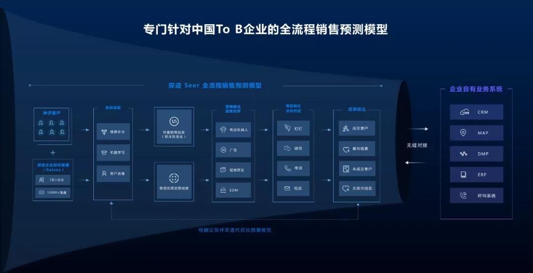 在智能銷售時代,企業(yè)想要獲得全面優(yōu)質的銷售線索提升,不僅要清楚洞察潛在客群的畫像特征,還要把客戶的全生命周期連接起來,才能真正實現(xiàn)線索發(fā)現(xiàn)、觸達到管理客戶的核心訴求。這就說明只單純解決某一方面銷售問題的工具型產品(例如傳統(tǒng)的CRM、呼叫系統(tǒng)等)已經無法滿足“智能銷售”的時代需求。