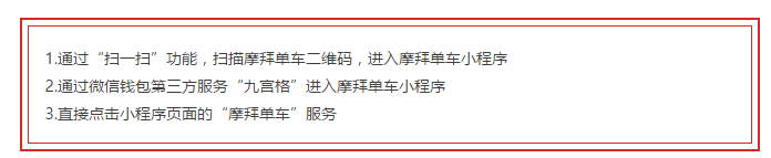 如今,微信用戶可以通過三種方式使用摩拜單車