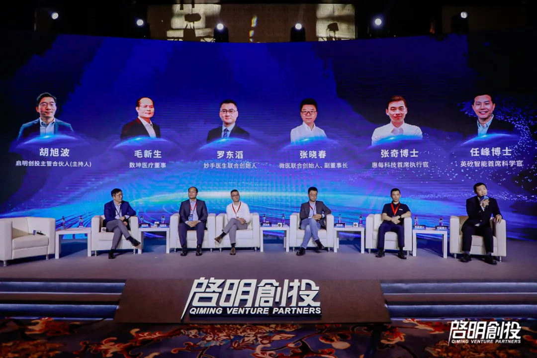 《數(shù)字醫(yī)療:科技改變醫(yī)療》專(zhuān)題討論環(huán)節(jié),由啟明創(chuàng)投主管合伙人胡旭波擔(dān)任主持人,與數(shù)坤科技董事長(zhǎng)毛新生、妙手醫(yī)生聯(lián)合創(chuàng)始人羅東滔、微醫(yī)聯(lián)合創(chuàng)始人、副董事長(zhǎng)張曉春、惠每科技首席執(zhí)行官?gòu)埰?、英矽智能首席科學(xué)官任峰展開(kāi)討論。