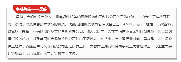 A:在美國(guó)念完計(jì)算機(jī)的碩士之后加入到了甲骨文公司,在這個(gè)過(guò)程中也學(xué)習(xí)到了整個(gè)的世界一流公司的軟件研發(fā)的技術(shù),軟件研發(fā)的流程,它的技術(shù)管理等各個(gè)方面,那么在這個(gè)之后的話(huà)就覺(jué)得技術(shù)本身只是對(duì)社會(huì)產(chǎn)生影響的一個(gè)很小的的一個(gè)點(diǎn),那可能還需要很多的對(duì)市場(chǎng)的認(rèn)知,對(duì)于把技術(shù)轉(zhuǎn)化為用戶(hù)真切需要的一件事情的一個(gè)創(chuàng)新流程,因?yàn)檫@個(gè)原因就去念了商學(xué)院,在哈佛商學(xué)院念完之后,基于自己在計(jì)算機(jī)科學(xué)的一些背景知識(shí),對(duì)基礎(chǔ)的理解和把握,以及對(duì)商業(yè)的一個(gè)判斷,對(duì)市場(chǎng)的判斷,最終是決定做風(fēng)險(xiǎn)投資是一個(gè)比較適合自己的,也是自己會(huì)比較熱愛(ài)的一個(gè)領(lǐng)域。