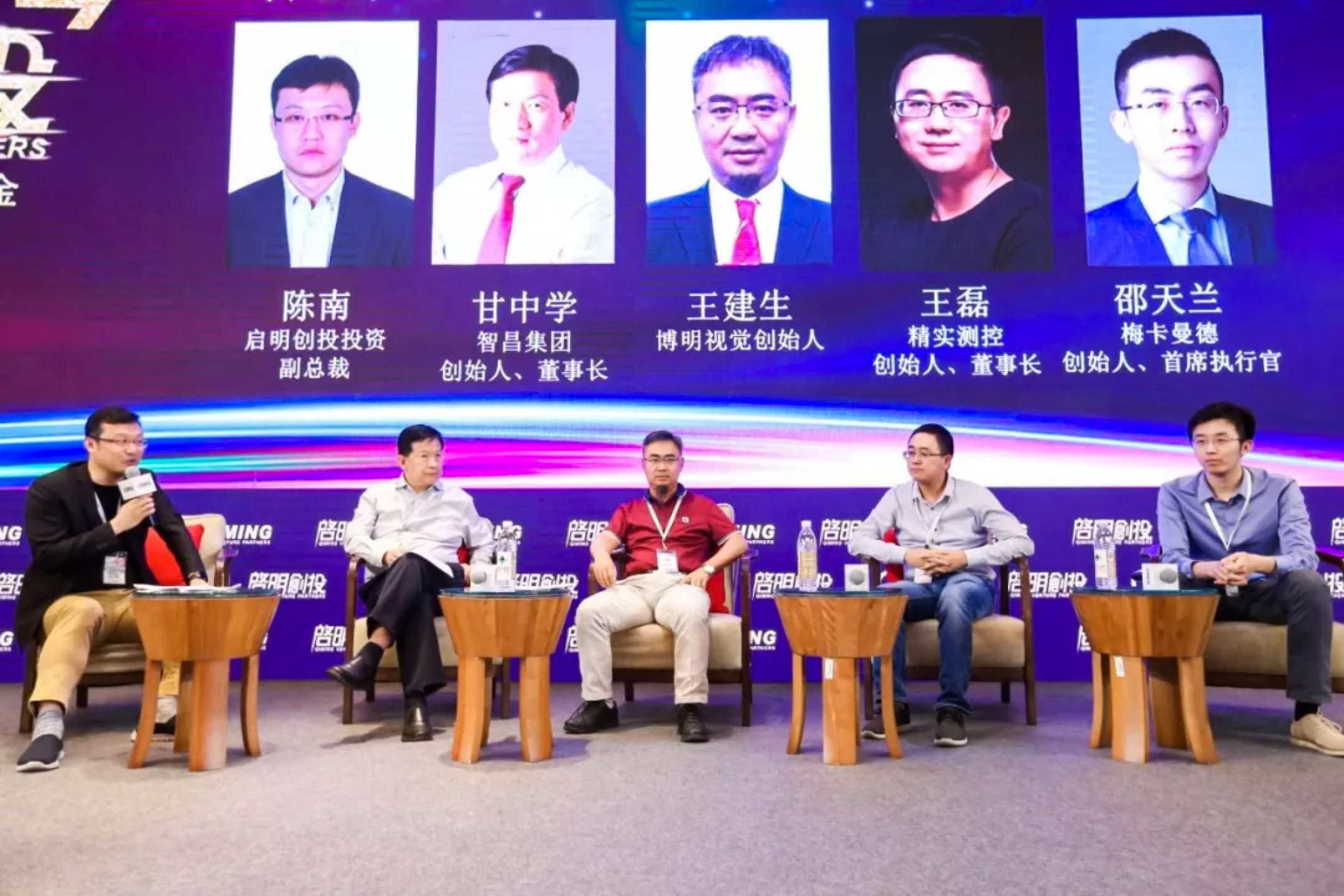 在信息技術(shù)專題討論中,圍繞《工業(yè)自動化4.0-打造鋼鐵俠的無人工廠》這一主題,主持人、啟明創(chuàng)投投資副總裁陳南對話浙江智昌機(jī)器人科技有限公司創(chuàng)始人、董事長甘中學(xué)博士,博明視覺創(chuàng)始人王建生,精實(shí)測控創(chuàng)始人、董事長王磊,梅卡曼德創(chuàng)始人、首席執(zhí)行官邵天蘭。