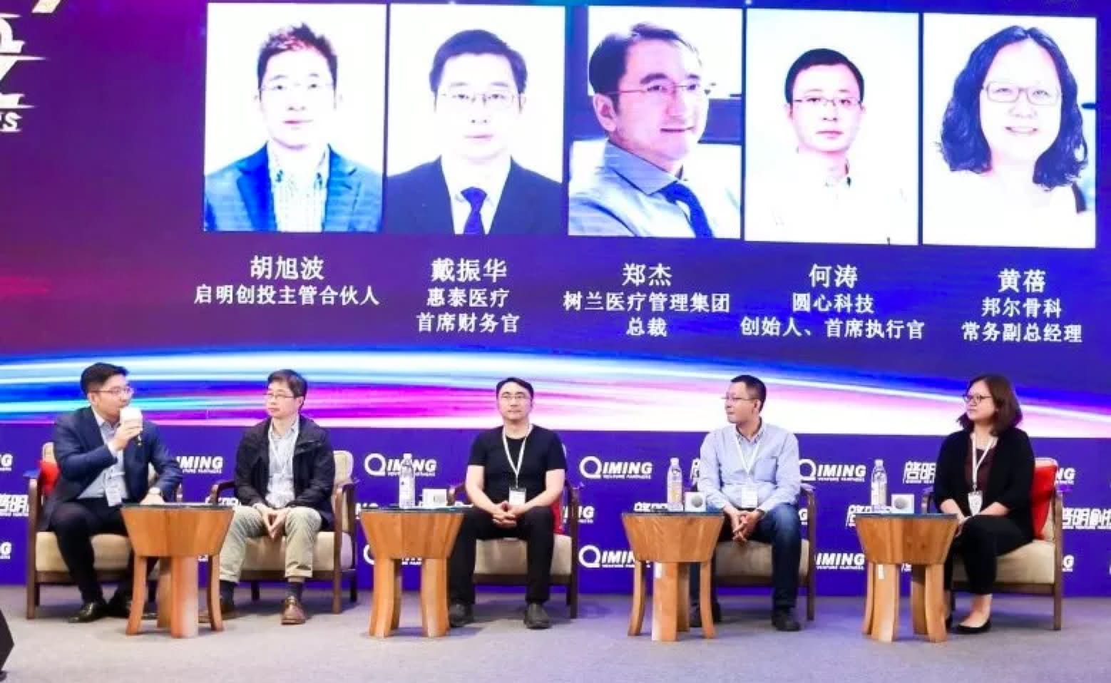 在醫(yī)療健康專題討論中,以《如何看到和抓住生物醫(yī)藥行業(yè)大的創(chuàng)新機(jī)會》為主題,主持人、啟明創(chuàng)投主管合伙人胡旭波對話惠泰醫(yī)療首席財務(wù)官戴振華,樹蘭醫(yī)療管理集團(tuán)總裁鄭杰,圓心科技創(chuàng)始人、首席執(zhí)行官何濤,邦爾骨科常務(wù)副總經(jīng)理黃蓓。