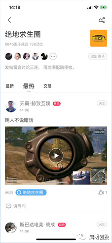 “圈”是由暴雞電競(jìng)首創(chuàng)的“所見即所得”式互動(dòng)社區(qū)?!芭e個(gè)例子,游戲玩家在直播平臺(tái)或其他社區(qū)類產(chǎn)品看到大神秀‘五殺’操作的視頻,要么不可能跟主播一起開黑,要么根本不知道大神是誰(shuí)。而在暴雞‘圈’里看到的短視頻或圖文,發(fā)布者即是大神本人,玩家能直接進(jìn)行溝通關(guān)注,滿足社交需求,雙方還可以回到游戲內(nèi)進(jìn)行教學(xué)指導(dǎo)或娛樂(lè)陪玩?!北╇u電競(jìng)CEO官志遠(yuǎn)說(shuō)。