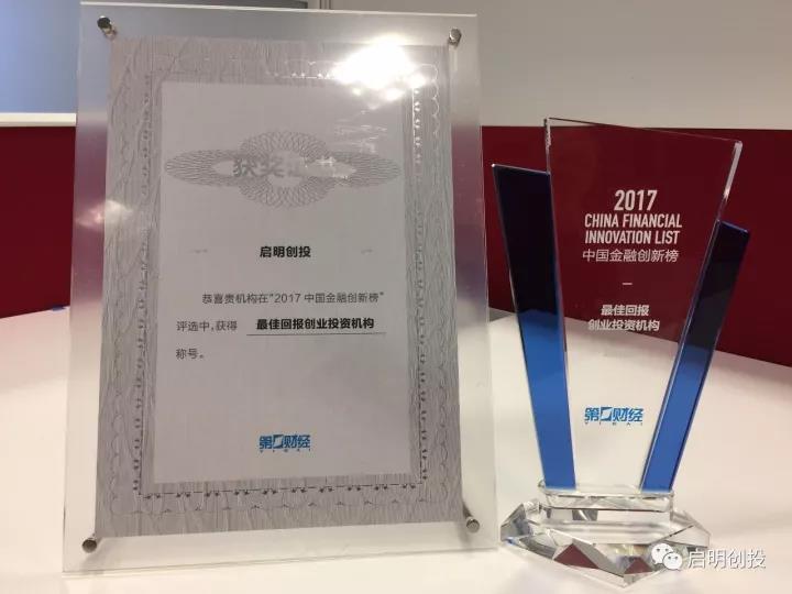 為表彰近年來在新金融領域取得卓越成就的機構和企業(yè),大會整合第一財經(jīng)金融資訊平臺專業(yè)優(yōu)勢,結(jié)合第三方研究機構意見和外部專家意見,發(fā)布了2017中國金融創(chuàng)新榜單。啟明憑借在2017年7個IPO上市的突出投資業(yè)績表現(xiàn),一舉榮獲“最佳回報創(chuàng)業(yè)投資機構”稱號。