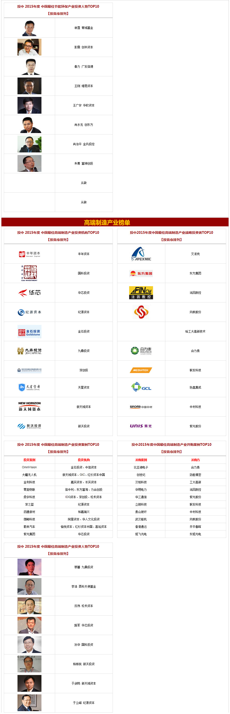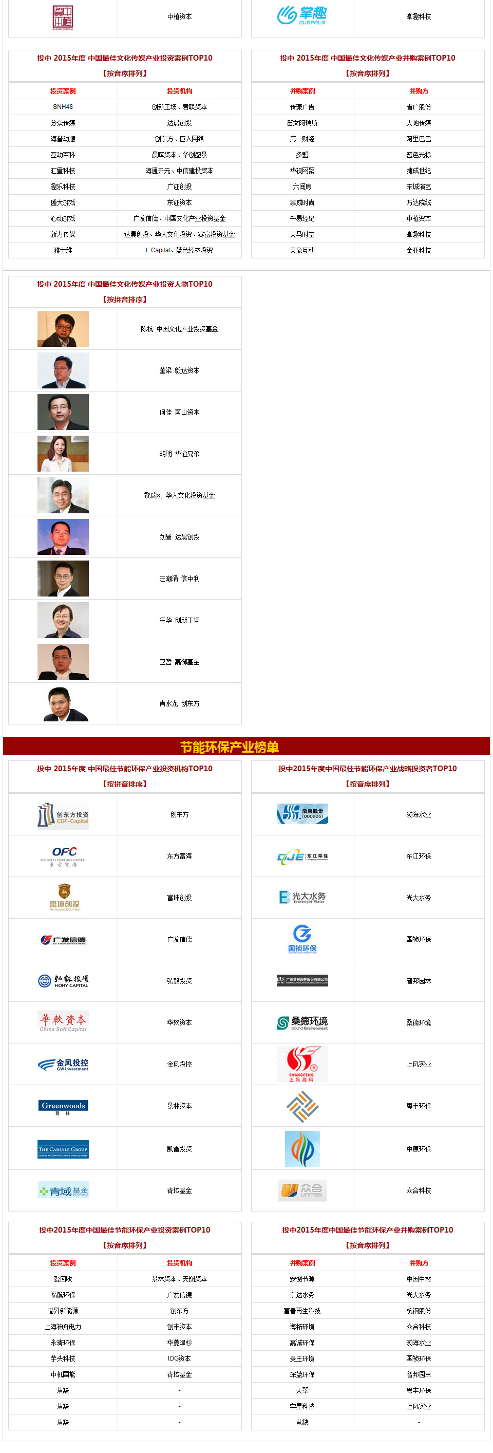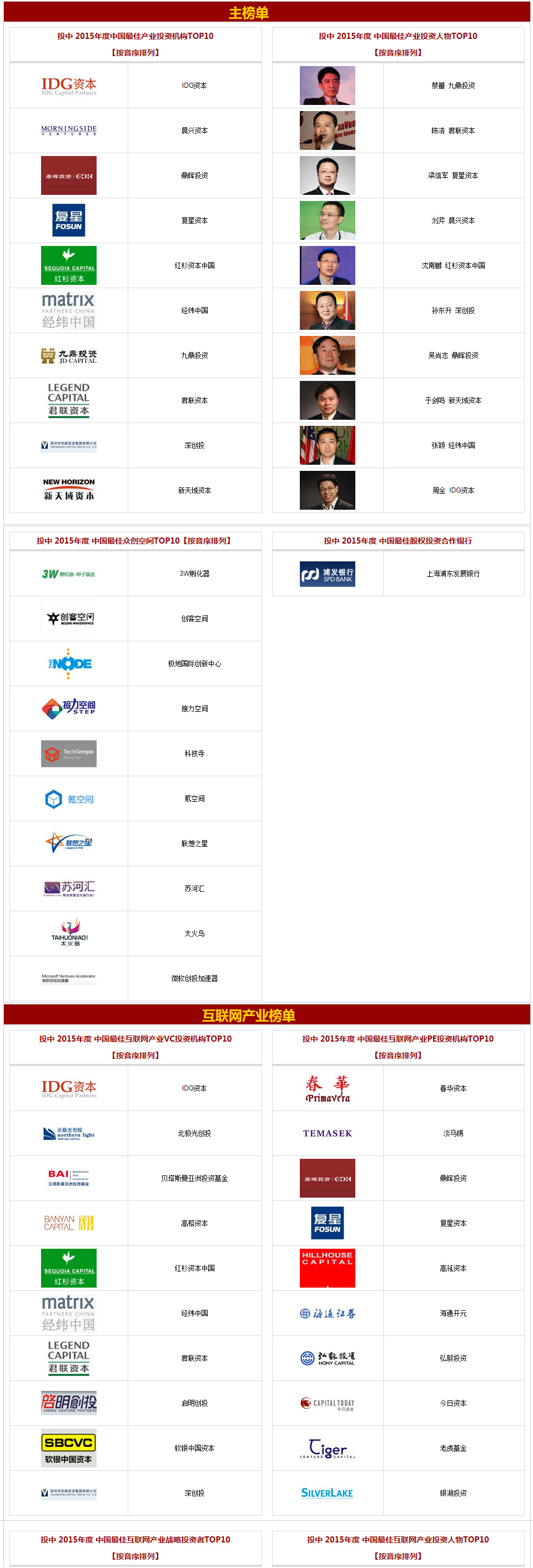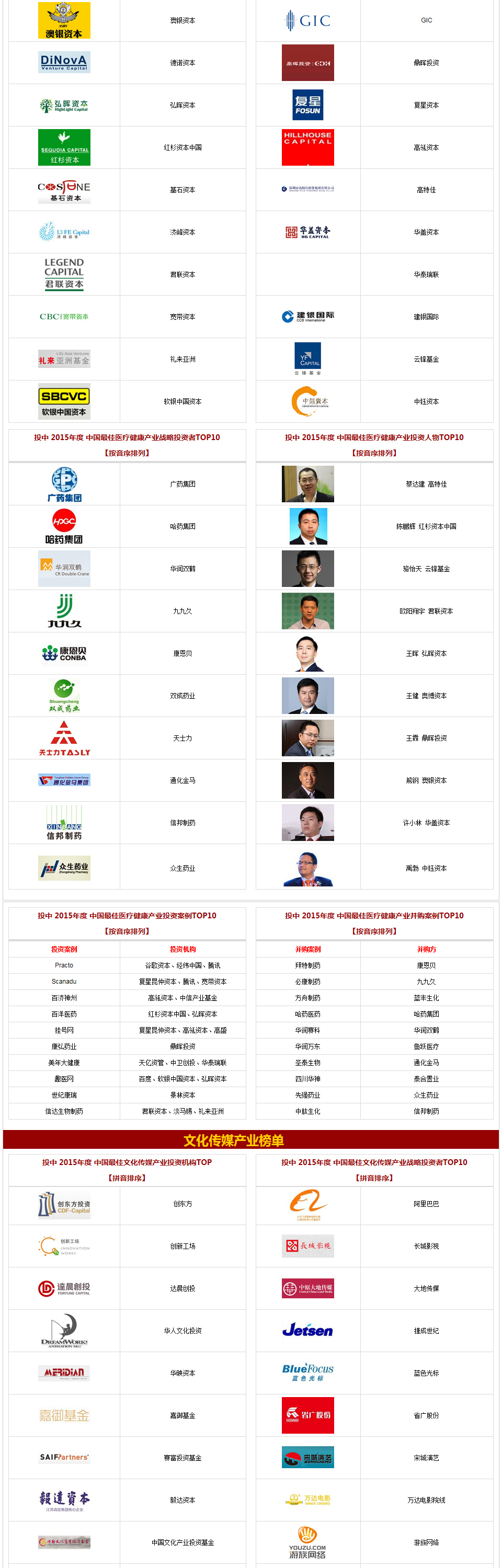 2015年投中·中國創(chuàng)業(yè)投資暨私募股權投資年度產(chǎn)業(yè)榜