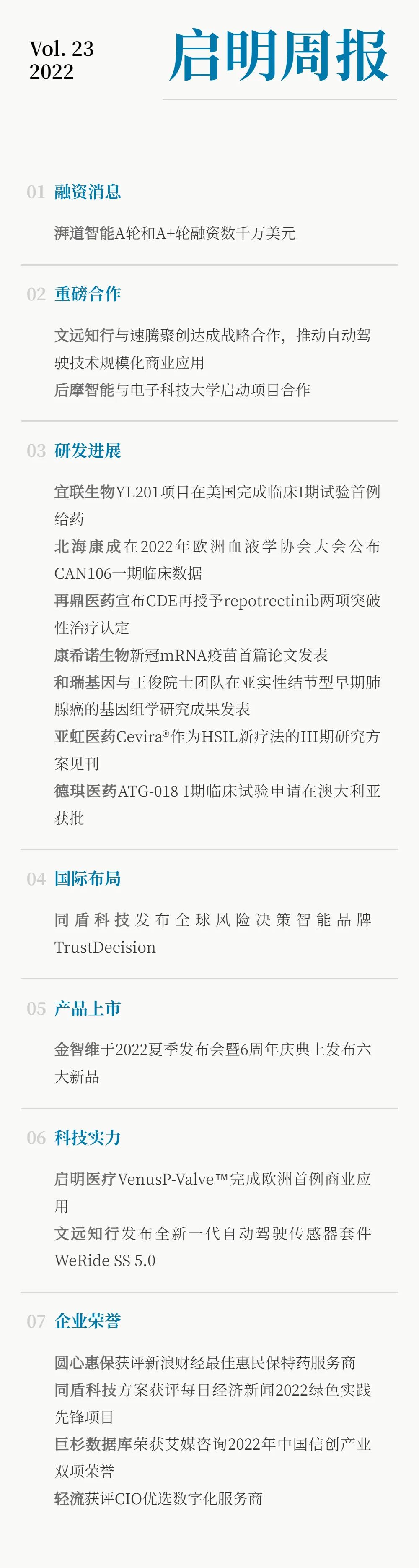 編者按:“啟明周報(bào)”欄目會在每周定期發(fā)布,盤點(diǎn)啟明創(chuàng)投投資企業(yè)的融資新聞、發(fā)展動(dòng)態(tài)。