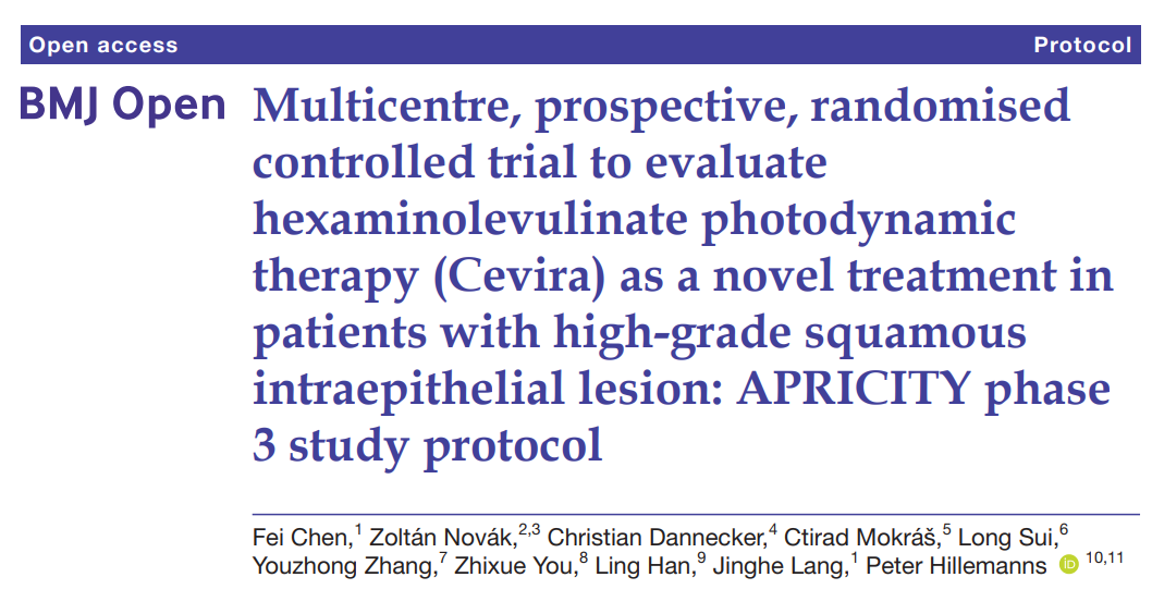 近日,啟明創(chuàng)投投資企業(yè)、專注于泌尿生殖腫瘤的全球化創(chuàng)新公司亞虹醫(yī)藥(688176.SH)宣布其APRICITY研究方案發(fā)表于BMJ Open。APRICITY是一項(xiàng)國際多中心、前瞻性、雙盲、隨機(jī)對照的III期研究,旨在進(jìn)一步評估光動(dòng)力藥械組合產(chǎn)品Cevira?用于治療宮頸高級別鱗狀上皮內(nèi)病變(HSIL)的有效性和安全性。
