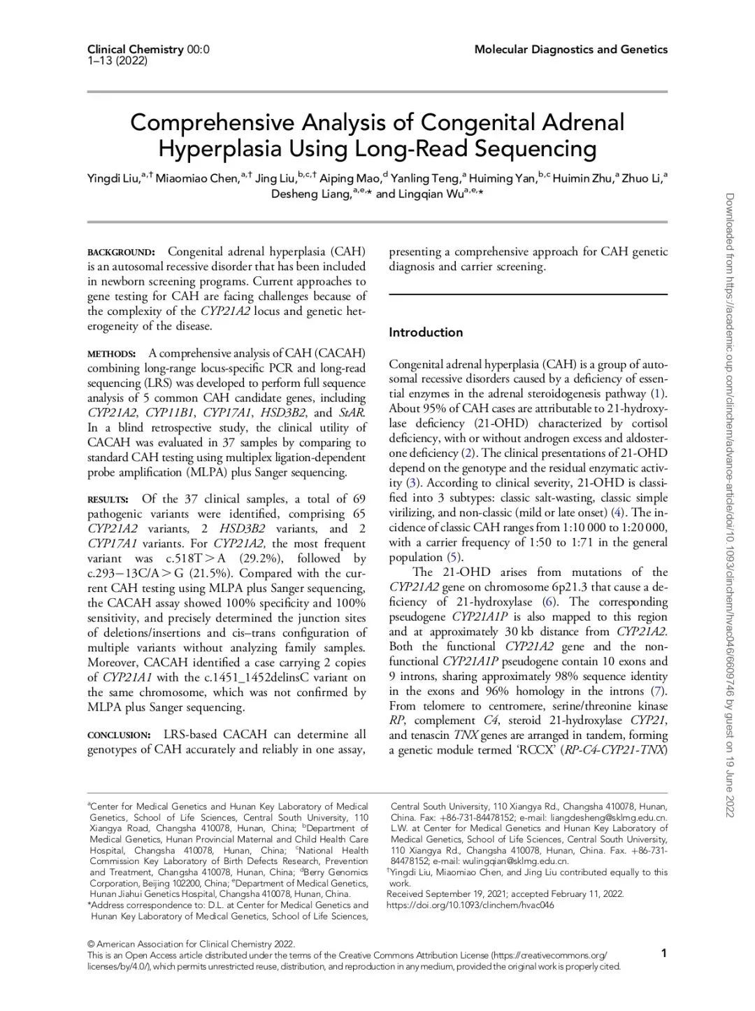 貝瑞基因三代CAH檢測技術(shù)臨床研究成果