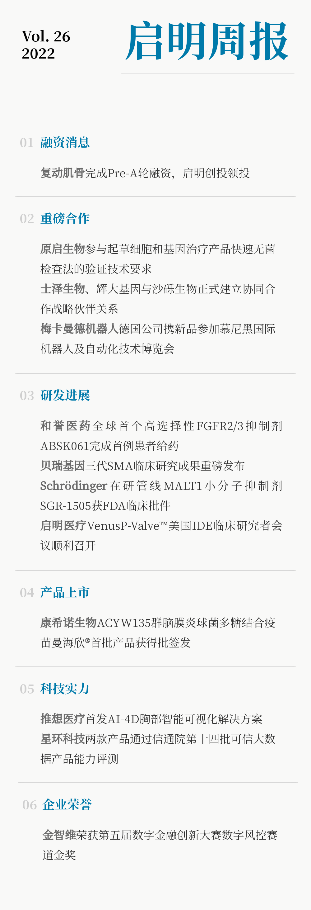 編者按:“啟明周報”欄目會在每周定期發(fā)布,盤點啟明創(chuàng)投投資企業(yè)的融資新聞、發(fā)展動態(tài)。