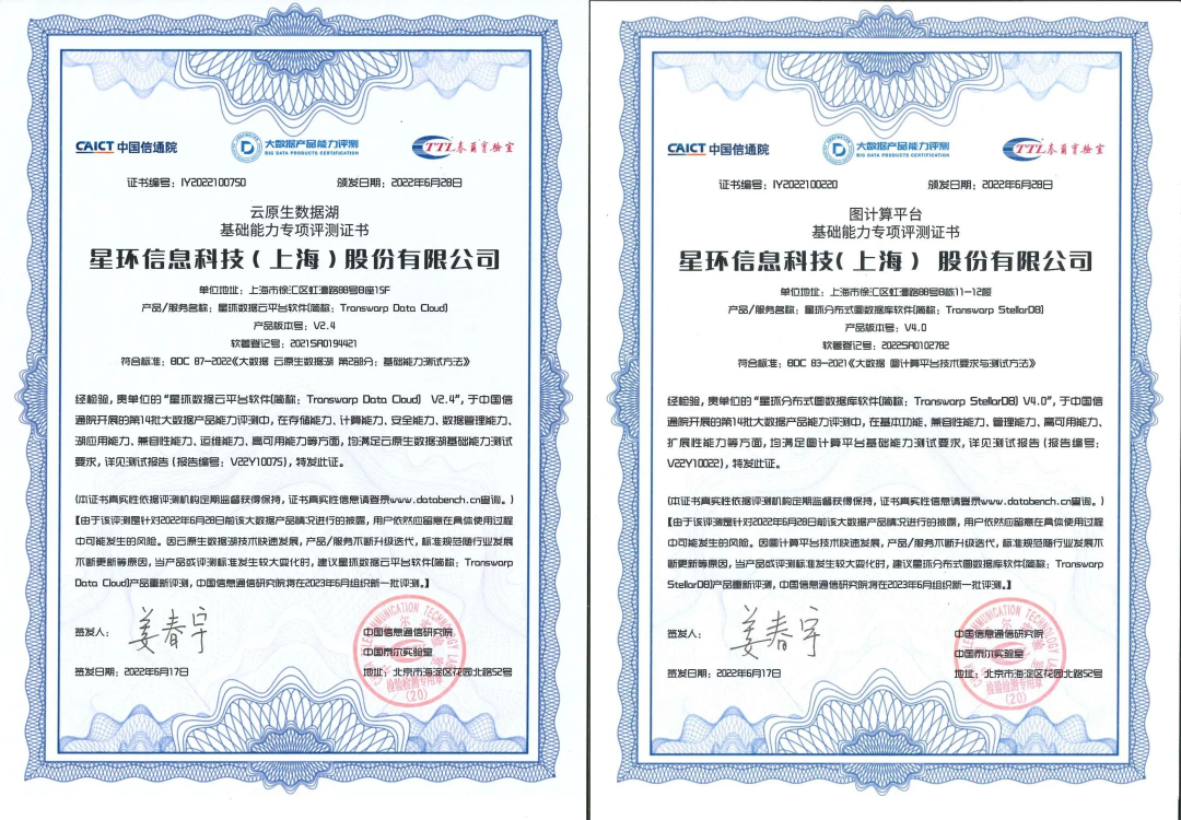 近日,中國信息通信研究院公布了第十四批“可信大數(shù)據(jù)”產(chǎn)品能力評測結果,啟明創(chuàng)投投資企業(yè)星環(huán)科技數(shù)據(jù)云平臺TDC和分布式圖數(shù)據(jù)庫StellarDB以優(yōu)異的表現(xiàn)分別通過了中國信息通信研究院云原生數(shù)據(jù)湖基礎能力測試和圖計算平臺基礎能力測試。