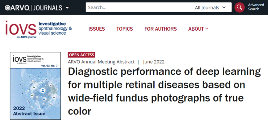 近日,啟明創(chuàng)投投資企業(yè)致遠慧圖人工智能實驗室的論文摘要正式發(fā)表于ARVO(視覺與眼科研究協(xié)會)的官方期刊Investigative Ophthalmology & Visual Science (IOVS)。