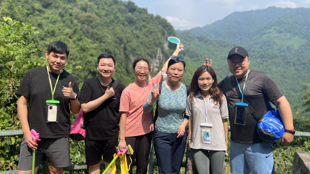 此次活動中,大家一起為九月過生日的同事慶生,欣賞了落日余暉下崇左原始而豐富的喀斯特地貌,領略了亞洲最美跨國瀑布的自然風采,探訪了廣西特有的靈長類動物、唯一一種由中國學者發(fā)現并命名的靈長類動物——白頭葉猴,在古龍山大峽谷漂流中“同舟共濟”,與當地的風土人情沉浸式接觸。