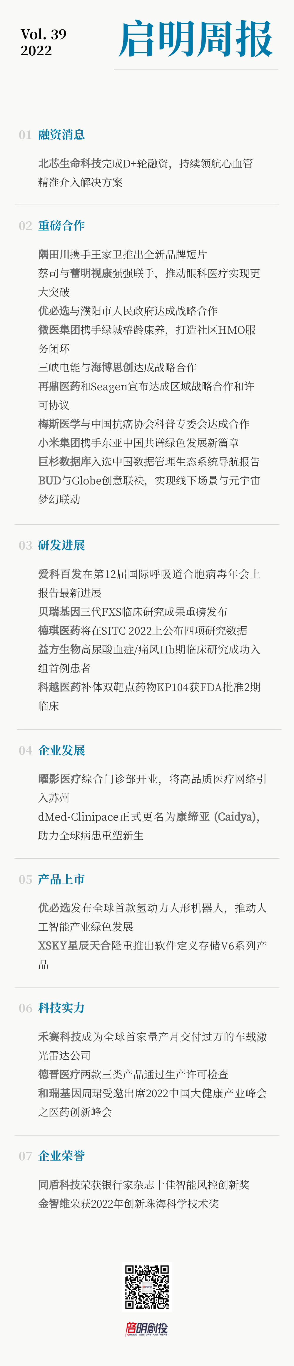 編者按:“啟明周報”欄目會在每周定期發(fā)布,盤點啟明創(chuàng)投投資企業(yè)的融資新聞、發(fā)展動態(tài)。