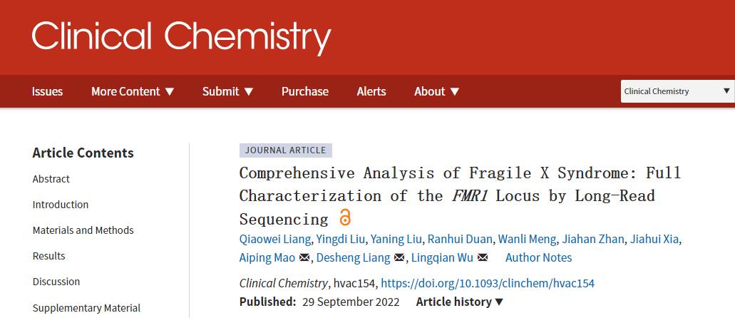 近日,由啟明創(chuàng)投投資企業(yè)貝瑞基因(000710.SZ)提供技術支持的三代FXS(脆性X綜合征)臨床回顧性研究成果在檢驗醫(yī)學領域排名第一的國際權威學術期刊Clinical Chemistry在線發(fā)表。這是貝瑞基因基于三代測序平臺開發(fā)復雜基因變異疾病診斷新技術的又一次重大突破。