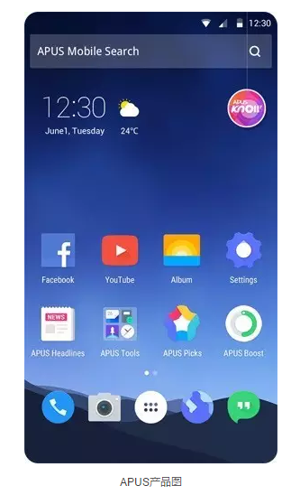 APUS堅守使命,幫助低端安卓手機(jī)運(yùn)行流暢,讓低成本接入互聯(lián)網(wǎng)成為可能。APUS采用ALL-in-One的解決方案,幫助用戶實(shí)現(xiàn)對手機(jī)交互的管理、應(yīng)用的管理和獲取、信息資訊的管理和獲取,對社交網(wǎng)絡(luò)的管理,全面滿足用戶接入移動互聯(lián)網(wǎng)時所產(chǎn)生的各種需求。