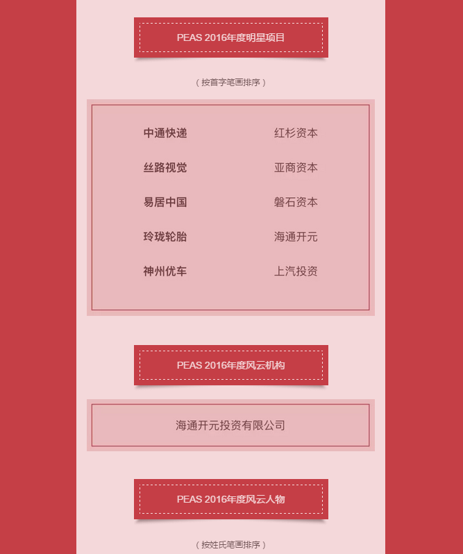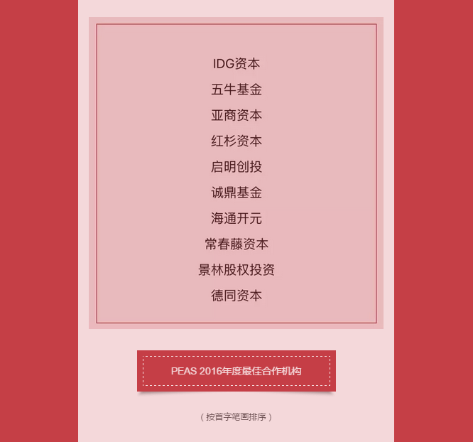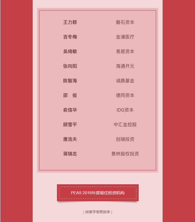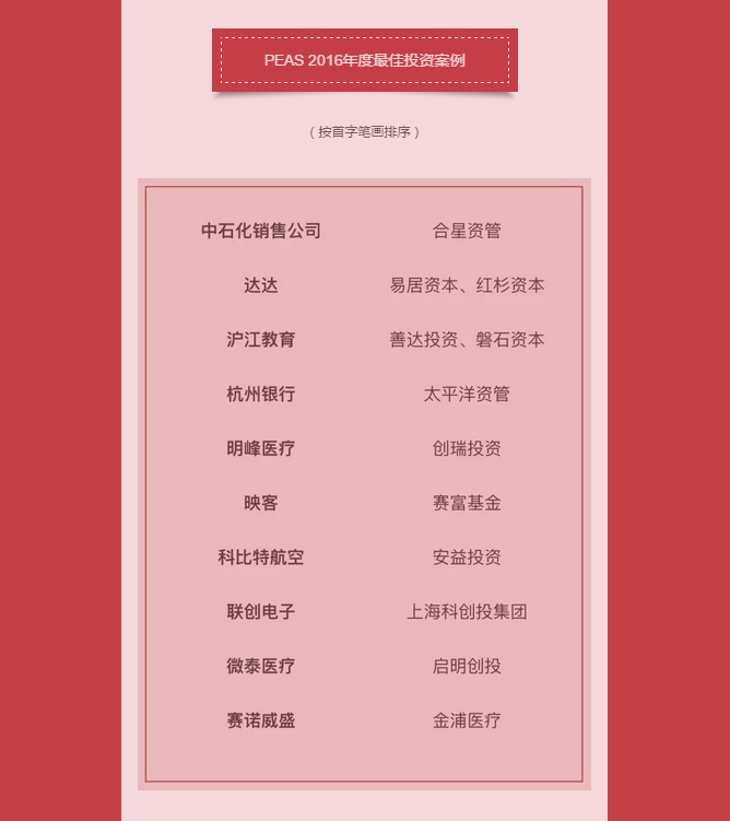PEAS 2016年度股權(quán)投資榜單揭曉 啟明獲評年度最佳投資機(jī)構(gòu)
