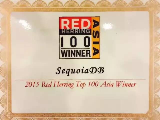 2015年9月16日,在2015年的Red Herring 亞洲峰會上,SequoiaDB巨杉數(shù)據庫,獲得了國際知名投資商業(yè)雜志《紅鯡魚》(Red Herring)頒發(fā)的“2015亞洲100創(chuàng)新企業(yè)”。